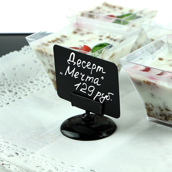 • Вставка в рамки из плотного чёрного пластика для нанесения надписей белым маркером на меловой основе. Рекомендуется использовать со специальными меловыми маркерами, представленными в нашем каталоге. Толщина табличек - 0,5 мм. Углы таблички закруглены.