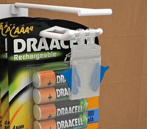 Противокражное устройство защищает товары, размещенные на двойных крючках. HOOK-GUARD оснащен по бокам кнопками,  которые не дают за один раз снять с крючка больше одной упаковки. При снятии покупатель использует обе руки, что служит дополнительной защитой, не давая возможности ворам легко и быстро забрать товар. HOOK-GUARD не потеряется, он надежно крепится к крючку. HOOK-GUARD не является ценникодержателем.