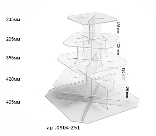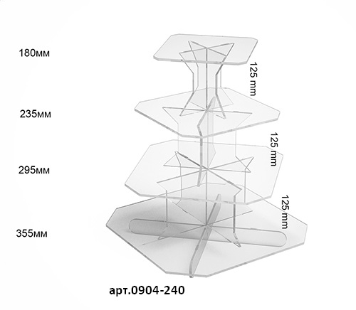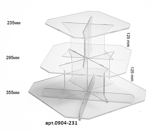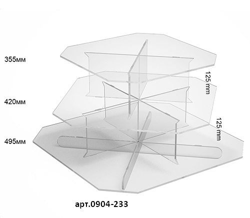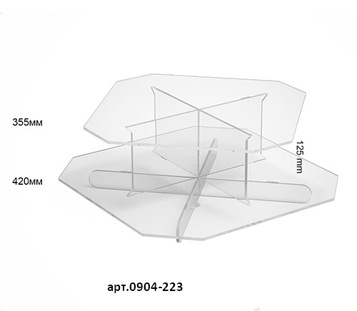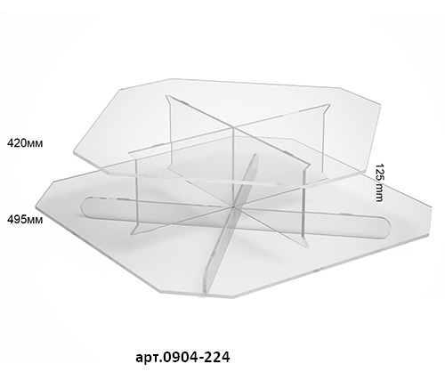 Квадратная витрина для различных товаров. Материал изготовления, оргстекло пять миллиметров, лазерная обработка материала. Эффективно выделяет товары, расположенные на витрине. Возможно изготовление в белом цвете + 20% к стоимости.