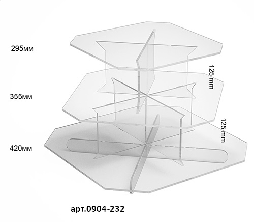 Квадратная витрина для различных товаров. Материал изготовления, оргстекло пять миллиметров, лазерная обработка материала. Эффективно выделяет товары, расположенные на витрине. Возможно изготовление в различной цветовой гамме.