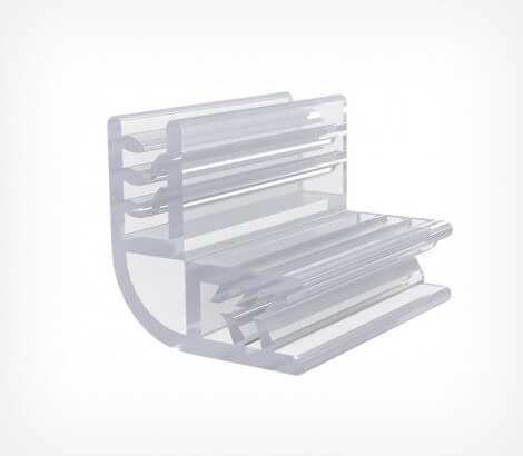 Двойной угловой держатель-захват SGV предназначен для фиксации вставок толщиной до 3 мм. Используется для размещения шелфтокеров, ценников и прочих рекламных материалов. Удерживает вставку как в вертикальном, так и в горизонтальном положении