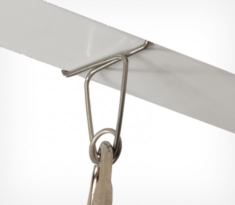 Клипса из металлической проволоки для быстрого крепления вывесок и плакатов к направляющим подвесного потолка.