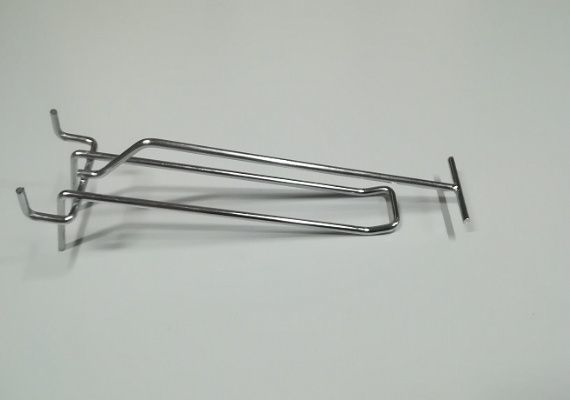 Крючок в перфорированную металлическую панель шаг 50 мм., двойной c ценникодержателем дл.200 мм Ø 4,0 мм хром