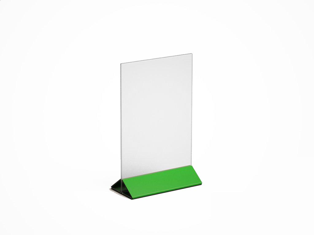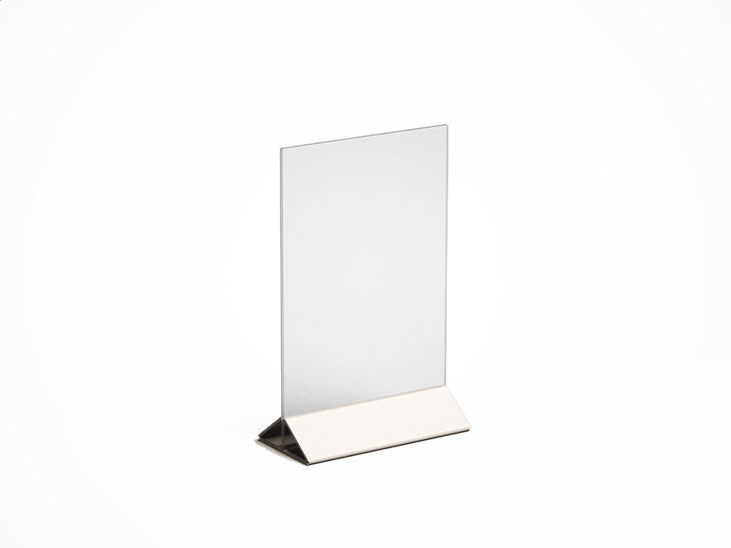 МЕНЮХОЛДЕР ФОРМАТА А-5, С НИЖНЕЙ ЧАСТЬЮ РАЗЛИЧНЫХ ЦВЕТОВ, КЛАСИЧЕСКОГО ВИДА. СОСТОИТ ИЗ ДВУХ ЧАСТЕЙ, ПРОЗРАЧНОГО Т-ОБРАЗНОГО ПЛАНШЕТА И НИЖНЕГО ДЕРЖАТЕЛЯ, ТРЕУГОЛЬНОЙ ФОРМЫ. ПОДХОДЯЩИЕ ИЗДЕЛИЕ, ПРИ НЕОБХОДИМОСТИ ПО ОСОБЕННОМУ ВЫДЕЛИТЬ ИНФОРМАЦИЮ.
