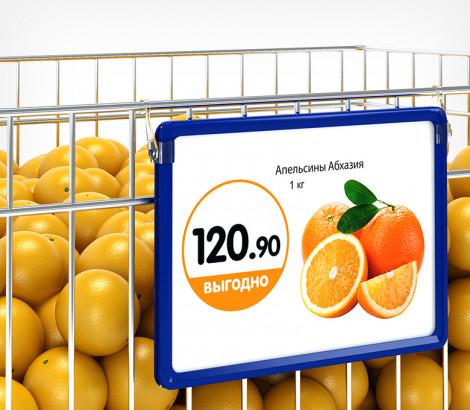 Крючок с подвижным основанием для подвешивания пластиковых рамок на подвесных профилях и металлических покупательских корзинах . Закрепляются с боковой стороны рамки. Для подвешивания одной рамки необходимо два крючка разной ориентации.
