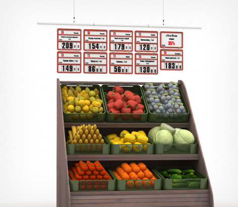 Кассета цен VISTA - наборный ценникодержатель формата А5+ для крупной презентации цен на товары, представленные в торговом зале вне полочных выкладок. Используется в подвесных системах , напольных стойках, на корзинах и ящиках в зоне выкладки овощей и фруктов. К кассете цен VISTA подходит вся рамочная фурнитура . В комплект входят блокноты цифр для набора цен, которые обеспечивают быструю и легкую смену цен так часто, как вам захочется.