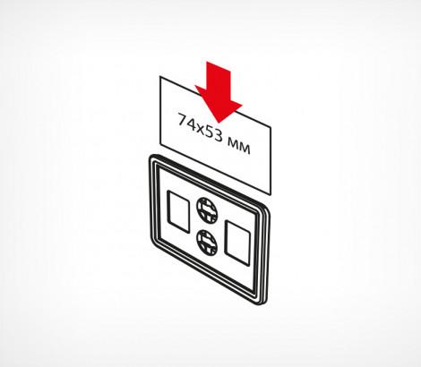 Универсальная рамка-ценникодержатель с 2 гнездами для крепления рамки на разных уровнях относительно полки. Прорезь для вставки по широкой стороне рамки. Размер вставки - 74×53 мм.
