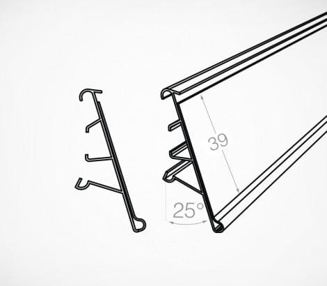 Ценникодержатель в холодильную витрину LF-39 дл.1250 мм белый — предназначен для крепления на полках в холодильных витринах Linde с отверстием на торце. Крепится с помощью клипс LF-CLIP