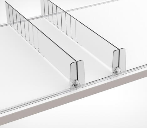 Разделитель DIV60-BT60 выс.60 мм с передним огран.60 мм — пластиковый разделитель с передним ограничителем. Имеет насечки с шагом 25 мм для обламывания по длине, материал: прозрачный ударопрочный пластик. Применение: для организации выкладки небольших лёгких товаров, таких как сигареты, лекарства, парфюмерия и косметика.