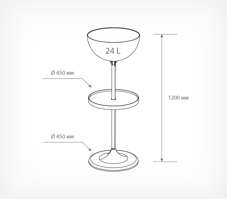 Дисплей UNIBOWL-24-RX предназначен для выкладки продовольственных и непродовольственных товаров в компактной упаковке. Позволяет делать выкладку товаров в неустойчивой упаковке в чаше и в стандартной упаковке на полке. Состав дисплея: пластиковое основание, труба длиной 520 мм, труба — 410 мм, пластиковая полка, пластиковая прозрачная чаша объёмом 24 литра, заглушка, защищающая полость трубы. Габаритные размеры: высота — 1200 мм, диаметр основания — 450 мм. Может использоваться с дополнительными опциями: информационной рамкой, ценниками, разделителями внутреннего пространства чаш, прозрачными бортиками для полки, которые приобретаются отдельно.
