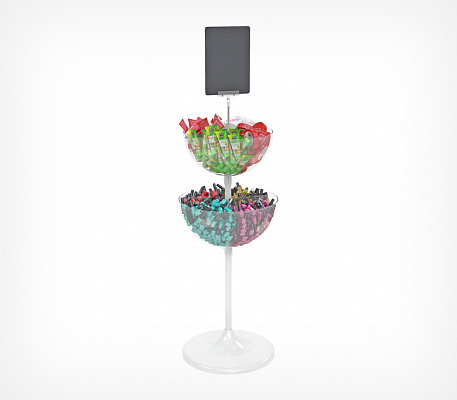 UNIBOWL-TOWER-DIV — двухуровневый дисплей для выкладки товаров в компактной упаковке. Состоит из двух чаш разных объёмов, что позволяет увеличивать объёмы выкладки и эффективность использования торговой площади.