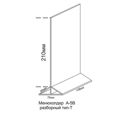 МЕНЮХОЛДЕР ФОРМАТА А-5, С НИЖНЕЙ ЧАСТЬЮ РАЗЛИЧНЫХ ЦВЕТОВ, КЛАСИЧЕСКОГО ВИДА.  СОСТОИТ ИЗ ДВУХ ЧАСТЕЙ,  ПРОЗРАЧНОГО Т-ОБРАЗНОГО ПЛАНШЕТА И НИЖНЕГО ДЕРЖАТЕЛЯ, ТРЕУГОЛЬНОЙ ФОРМЫ. ПОДХОДЯЩИЕ ИЗДЕЛИЕ, ПРИ НЕОБХОДИМОСТИ ПО ОСОБЕННОМУ ВЫДЕЛИТЬ ИНФОРМАЦИЮ.
