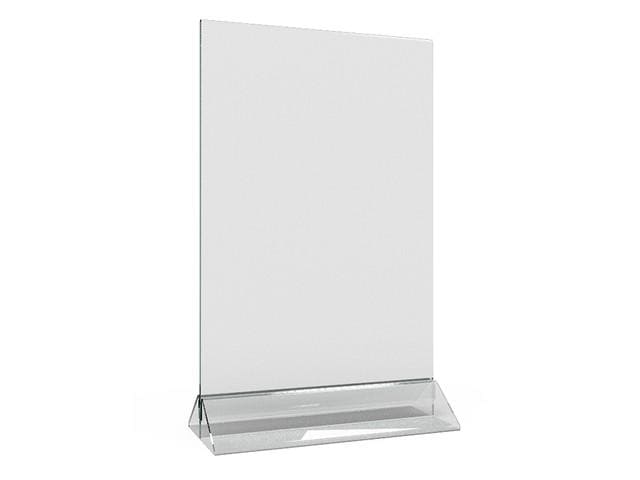 Прозрачный Менюхолдер, класического вида. Состоит из двух частей, планшета и нижнего держателя. Планшет вставляется в держатель сверху.
