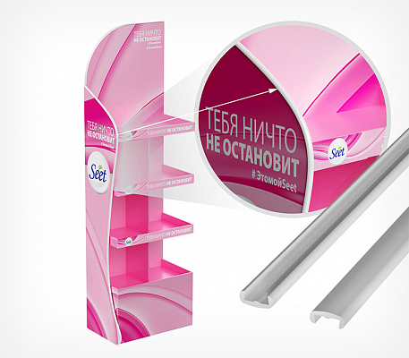 Гибкий профиль FLEXLINE для рекламных дисплеев — это мягкий П-образный профиль из гибкого ПВХ, специально разработанный для обрамления торцов рекламных дисплеев и выставочных конструкций. Преимущества FLEXLINE: придаёт изделиям завершённый и эстетичный внешний вид; надёжная защита от механических повреждений и влаги;