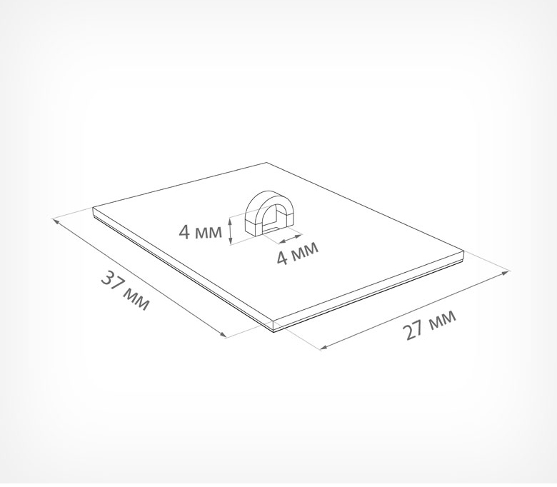 MB2K 37х27 мм — квадратное потолочное крепление на двухстороннем скотче для подвешивания мобайлов, вывесок, плакатов. Имеет прочную петлю для подвесов. Максимальная нагрузка — 2 кг. Благодаря двухстороннему скотчу крепление легко и быстро закрепляется на потолке или другой поверхности без необходимости сверлить отверстия