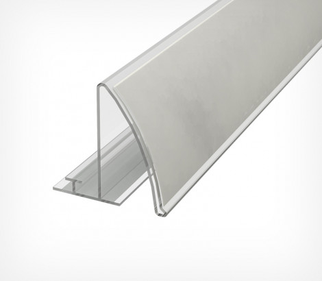 Это многофункциональный полочный самоклеящийся держатель рекламных вставок. Поверхность профиля слегка изогнута для лучшего обзора вставок. Крепится на верхний край полки на клеящуюся ленту в его основании.