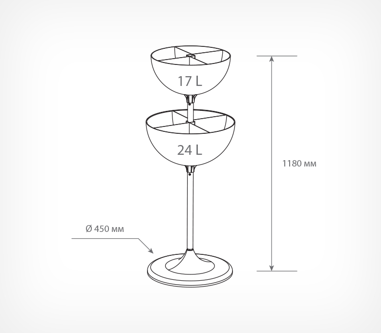 UNIBOWL-TOWER-DIV — двухуровневый дисплей для выкладки товаров в компактной упаковке. Состоит из двух чаш разных объёмов, что позволяет увеличивать объёмы выкладки и эффективность использования торговой площади.